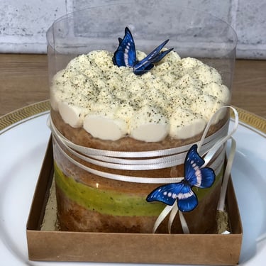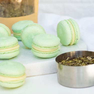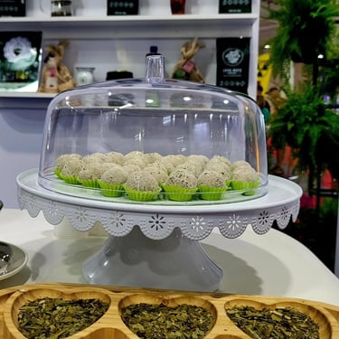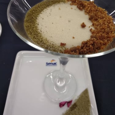 A dica é fazer a montagem nos pratos e peneirar um pouco de erva-mate por cima!